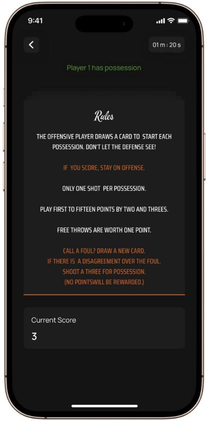 Take Your ShotEach play is unique with randomized Challenge Cards! Draw a card to see your next move, from shooting drills to bonus challenges. Step up, complete the card, and rack up points. Ready to score?Let the game guide you. Each card is a new opportunity.