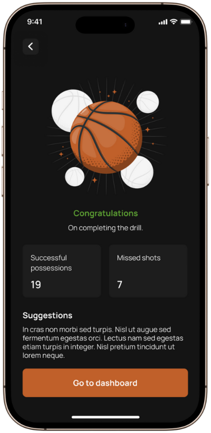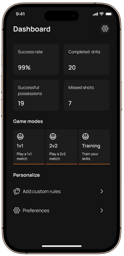 Our interactive dashboard provides instant feedback on your training sessions, so you’re always aware of your performance. Monitor your success rate, completed drills, successful possessions, and missed shots in real-time to keep improving.
